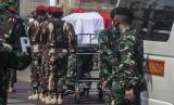 Sejumlah prajurit Kopassus bersiap mengusung jenazah Kepala BIN Daerah (Kabinda) Papua Mayjen Anumerta I Gusti Putu Danny Karya Nugraha untuk dimakamkan di Taman Makam Pahlawan Kalibata, Jakarta, Selasa (27/4/2021). Kabinda Papua tersebut gugur akibat tertembak oleh Kelompok Separatis dan Teroris (KST) Papua saat bertugas di Kampung Dambet, Distrik Beoga, Kabupaten Puncak, Minggu (25/4/2021). (FOTO : ANTARA/Muhammad Adimaja)