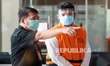 REPUBLIKA.CO.ID, JAKARTA -- Anak dari Bupati nonaktif Bandung Barat Andri Wibawa (kanan) bersiap menjalani pemeriksaan perdana di Gedung KPK, Jakarta, Selasa (27/4/2021). KPK memeriksa Bupati nonaktif Bandung Barat Aa Umbara Sutisna dan anaknya Andri Wibawa selaku pihak swasta terkait kasus dugaan tindak pidana korupsi pengadaan barang tanggap darurat bencana atau Bansos pandemi COVID-19 pada Dinas Sosial Pemerintah Daerah Kabupaten Bandung Barat Tahun 2020.