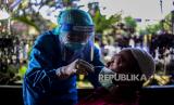 REPUBLIKA.CO.ID, BOGOR -- Petugas Puskesmas Kecamatan Bogor Tengah melakukan tes usap dengan mendatangi langsung rumah warga di Bogor, Jawa Barat, Selasa (27/4). Layanan tes dengan metode jemput bola ke rumah warga itu untuk mempermudah warga yang ingin melakukan tes usap tanpa harus keluar dari rumah.