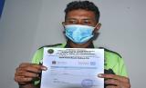 REPUBLIKA.CO.ID, SERANG -- Pengemudi bus AKAP menunjukkan surat keterangan hasil tes deteksi COVID-19 metode GeNose C19 di Terminal Bis Pakupatan, Serang, Banten, Selasa (27/4). Layanan gratis tes GeNose C19 bagi calon penumpang dan awak bis di terminal setempat dilakukan untuk mencegah penyebaran COVID-19.