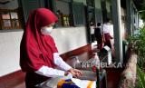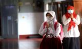 Siswa mengikuti ujicoba pembelajaran tatap muka di SDN Lempuyangwangi, Yogyakarta, Rabu (28/4). Pemkot Yogyakarta menggelar ujicoba pembelajaran tatap muka di lima SD dan lima SMP. Periode ujicoba mulai 28 April hingga 7 Mei dan kelas yang ikut sangat dibatasi. Untuk SMP yang mengikuti PTM kelas VII dan VIII, sedangkan SD kelas IV dan V. (FOTO : Wihdan Hidayat / Republika)
