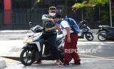 Orang tua mengantar siswa pada hari pertama ujicoba pembelajaran tatap muka di SDN Lempuyangwangi, Yogyakarta, Rabu (28/4). Pemkot Yogyakarta menggelar ujicoba pembelajaran tatap muka di lima SD dan lima SMP. Periode ujicoba mulai 28 April hingga 7 Mei dan kelas yang ikut sangat dibatasi. Untuk SMP yang mengikuti PTM kelas VII dan VIII, sedangkan SD kelas IV dan V. (FOTO : Wihdan Hidayat / Republika)