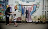 Warga memilah pakaian bekas yang dijajakan secara gratis di Jalan Jati Padang VI RT 002 RW 004, Pasar Minggu, Jakarta Selatan, Rabu (28/4). Kegiatan bazar gratis sayur mayur dan baju layak pakai tersebut diinisiasi warga sebagai aksi solidaritas untuk warga lain yang terdampak pandemi di tengah bulan Suci Ramadhan. Bazar tersebut berlangsung selama seminggu mulai Rabu (28/4) hingga Selasa (4/5). Republika/Thoudy Badai (FOTO : Republika/Thoudy Badai)