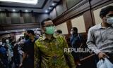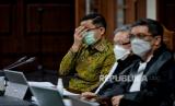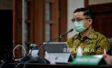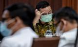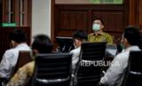 REPUBLIKA.CO.ID, JAKARTA -- Terdakwa mantan Menteri Sosial Juliari P. Batubara mendengarkan keterangan saksi saat sidang lanjutan di Pengadilan Tipikor, Jakarta, Rabu (28/4).