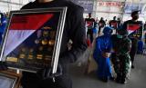 REPUBLIKA.CO.ID, SURABAYA -- Keluarga korban tenggelamnya KRI Nanggala 402 menerima penganugerahan tanda kehormatan dan kenaikan pangkat luar biasa prajurit KRI Nanggala-402 di Pusat Penerbangan TNI Angkatan Laut, Sidoarjo, Jawa Timur, Kamis (29/4).