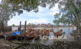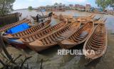 REPUBLIKA.CO.ID, JAMBI -- Penjual merapikan beberapa perahu miliknya yang ditambatkan di muara Sungai Tungkal Ilir, Tanjungjabung Barat, Jambi, Kamis (29/4/2021).
