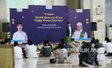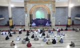 Ketua PWNU Jawa Barat, KH Hasan Nuri Hidayatullah menyampaikan tausiyah saat Peringatan Nuzulul Quran 1442 H Tingkat Provinsi Jawa Barat, di Masjid Raya Bandung, Alun-alun Kota Bandung, Kamis (29/4). Pada kesempatan itu Pemprov Jawa Barat memberikan secara simbolis santunan untuk dhuafa dan marebot masjid sebesar Rp 25 juta. (FOTO : Edi Yusuf/Republika)