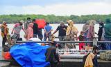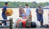 REPUBLIKA.CO.ID, JAMBI -- Pemudik asal Riau dan daerah lain dalam Provinsi Jambi menaiki tangga setibanya di dermaga Pelabuhan LLASDP Kuala Tungkal, Tanjungjabung Barat, Jambi, Kamis (29/4/2021).