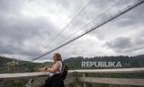 Pengunjung melewati Jembatan 516 Arouca di Arouca, Portugal, Jumat (16/4). Jembatan gantung terbesar di dunia dengan panjang 516 meter dan tinggi 175 meter di atas Sungai Paiva itu mulai dapat dikunjungi oleh masyarakat umum mulai 3 Mei. (FOTO : EPA-EFE/ESTELA SILVA)