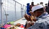 Keluarga awak KRI Nanggala 402 menggelar Doa dari geladag Helly KRI Dr Soeharso-990 di perairan utara pulau Bali, Bali, Jumat (30/4/2021). Kegiatan tabur bunga yang diikuti dari 53 keluarga awak KRI Nanggala 402 yang tenggelam diperairan utara Bali itu diwarnai kesedihan keluarga korban. (FOTO : Antara/Budi Candra Setya)