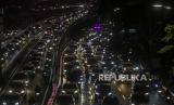 REPUBLIKA.CO.ID, JAKARTA -- Suasana kendaraan terjebak macet di Jalan Tol Cawang-Grogol, Jakarta, Sabtu (1/5/2021). Berdasarkan data transaksi volume lalu lintas di Gerbang Tol Cikampek Utama (GT Cikatama) pada H-5 larangan mudik atau Sabtu (1/5/2021) dari pukul 06.00 WIB hingga pukul 17.12 WIB sebanyak 14.382 kendaraan meninggalkan DKI Jakarta masuk ke GT Cikatama menuju arah Palimanan.