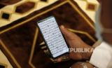 Umat Muslim membaca Al-Quran melalui gawainya di masjid Al-Jaffali, Jeddah, Arab Saudi, Jumat (30/4). Selama Ramadhan 1442 Hijriah ini umat Muslim bisa menyelenggarakan Shalat berjamaah di Masjid dengan mematuhi protokol kesehatan seperti mengenakan masker dan menjaga jarak sosial untuk menghindari penyebaran virus Covid-19. (AP Photo/Amr Nabil) (FOTO : AP/Amr Nabil)