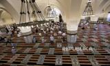 Warga Jeddah shalat berjamaah di masjid-masjid dengan menjaga jarak satu sama lain..
