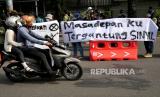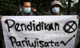 REPUBLIKA.CO.ID, YOGYAKARTA -- Mahasiswa dari Komunitas Masyarakat Warung Kopi menggelar aksi unjuk rasa memperingati Hari Pendidikan Nasional di Yogyakarta, Ahad (2/5). Dalam aksi ini mereka menuntut pencabutan UU Omnibus Law dan penghapusan sistem Uang Kuliah Tunggal (UKT).