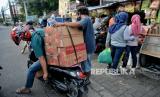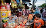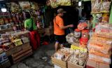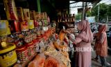 Warga membeli kue kering di salah satu toko kue kering di kawasan Ciracas, Jakarta, Senin (3/5). Menjelang Idul Fitri 1442 Hijriah sejumlah pedagang mengaku mengalami peningkatan penjualan mencapai 30 persen dibanding tahun sebelumnya. (FOTO : Republika/Thoudy Badai)