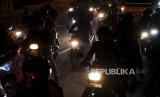 REPUBLIKA.CO.ID, KARAWANG -- Sejumlah pengendara motor melintas di jalur Pantura, Klari, Karawang, Jawa Barat, Selasa (4/5/2021) dini hari.