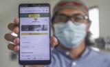 REPUBLIKA.CO.ID, BOGOR -- Warga Bogor menunaikan membayar zakat melalui laman resmi Badan Amil Zakat Nasional (Baznas) melalui perangkat telepon di Bogor, Jawa Barat, Selasa (4/5/2021). Pimpinan Baznas Rizaludin Kurniawan menegaskan masyarakat tidak perlu khawatir bila ingin berzakat secara praktis tanpa tatap muka lewat kanal digital karena hukumnya tetap sah.