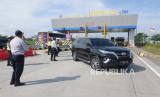 Sejumlah personel gabungan dari Satlantas Polres Boyolali dan Dinas Perhubungan Kabupaten Boyolali menghentikan mobil pribadi berplat nomor luar kota saat penyekatan pemudik awal di Exit Tol Boyolali, Jawa Tengah, Selasa (4/5/2021). Penyekatan tersebut digelar untuk memeriksa surat kelengkapan kesehatan bebas COVID-19 dari para penumpang menjelang diberlakukannya larangan mudik 6-17 Mei 2021.  (FOTO : Aloysius Jarot Nugroho/ANTARA )