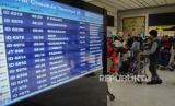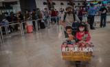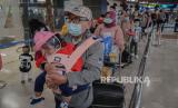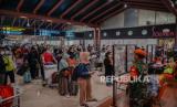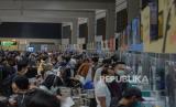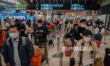 Calon penumpang memadati Terminal 2 Bandara Soekarno Hatta, Tangerang, Banten, Rabu (5/5). Pengelola Bandara Soekarno Hatta mencatat pergerakan jumlah penumpang jelang H-1 larangan mudik 6-17 Mei 2021 diprediksi sekitar 86.000 orang atau naik 15 persen dibandingkan hari kemarin. Untuk mengantisipasi terjadinya kerumuman penumpang, petugas bandara melakukan buka tutup untuk masuk ke counter cek in berdasarkan jam keberangkatan. Republika/Thoudy Badai (FOTO : Republika/Thoudy Badai)