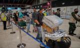 Calon penumpang mengantre saat melakukan validasi dokumen kesehatan di Terminal 2 Bandara Soekarno Hatta, Tangerang, Banten, Rabu (5/5). Pengelola Bandara Soekarno Hatta mencatat pergerakan jumlah penumpang jelang H-1 larangan mudik 6-17 Mei 2021 diprediksi sekitar 86.000 orang atau naik 15 persen dibandingkan hari kemarin. Untuk mengantisipasi terjadinya kerumuman penumpang, petugas bandara melakukan buka tutup untuk masuk ke counter cek in berdasarkan jam keberangkatan. Republika/Thoudy Badai (FOTO : Republika/Thoudy Badai)