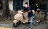 Pekerja mendata paket motor sebelum dikirim melalui jasa ekspedisi kereta di Jalan Bungur Raya, Senen, Jakarta, Rabu (5/5). Meskipun pengiriman motor ke berbagai kota di pulau Jawa mengalami peningkatan seiring mendekatnya hari raya Lebaran, Namun menurut pekerja jumlah pengiriman paket motor menurun sejak 2 tahun ini akibat imbas pandemi dibandingkan sebelum pandemi Covid-19. (FOTO : Prayogi/Republika.)