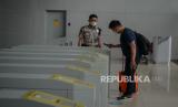 Penumpang menunggu jemputan shuttle bus di Stasiun KA Bandara Soekarno Hatta, Tangerang, Banten, Rabu (5/5). PT Railink menghentikan sementara operasional KA Bandara selama larangan mudik mulai dari tanggal 6-17 Mei 2021 mendatang sebagai antisipasi penyebaran virus Covid-19. Republika/Thoudy Badai (FOTO : Republika/Thoudy Badai)