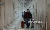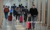 Penumpang berjalan setibanya di Stasiun KA Bandara Soekarno Hatta, Tangerang, Banten, Rabu (5/5). PT Railink menghentikan sementara operasional KA Bandara selama larangan mudik mulai dari tanggal 6-17 Mei 2021 mendatang sebagai antisipasi penyebaran virus Covid-19. Republika/Thoudy Badai (FOTO : Republika/Thoudy Badai)