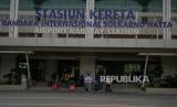 Suasana Stasiun KA Bandara Soekarno Hatta, Tangerang, Banten, Rabu (5/5). PT Railink menghentikan sementara operasional KA Bandara selama larangan mudik mulai dari tanggal 6-17 Mei 2021 mendatang sebagai antisipasi penyebaran virus Covid-19. Republika/Thoudy Badai (FOTO : Republika/Thoudy Badai)