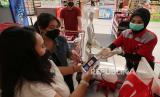 Nasabah melakukan transaksi pembayaran menggunakan Scan QRIS OCTO Mobile di sebuah pusat perbelanjaan di Bintaro, Tangerang, Rabu (5/5). Menjelang Hari Raya Idul Fitri 1442 H, CIMB Niaga menyediakan program belanja melalui fitur Scan QRIS di OCTO Mobile dengan cashback hingga 30% di merchant offline. Selain itu, nasabah juga bisa menikmati diskon 50% untuk berbelanja di merchant online (e-commerce) seperti Bukalapak, BliBli, iStyle, Jakmall, Tempat Niaga, dan Tokopedia. Foto: darmawan/republika. (FOTO : Republika/Darmawan)