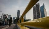 REPUBLIKA.CO.ID, JAKARTA -- Warga menyeberang di zebra cross di Jalan Jenderal Sudirman, Jakarta, Rabu (5/5). Badan Pusat Statistik (BPS) mencatat pertumbuhan ekonomi Indonesia minus 0,74 persen pada kuartal I 2021.