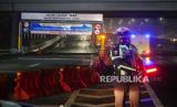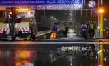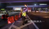 Petugas melakukan penutupan sementara Jalan Layang Sheikh Mohamed Bin Zayed (MBZ) di Bekasi, Jawa Barat, Kamis (6/5) dinihari, saat pemberlakuan larangan mudik lebaran 2021. Penutupan akan dilakukan pada 6 Mei 2021 pukul 00.00 WIB hingga 18 Mei 2021 pukul 23.59 WIB. (FOTO : Republika/Edwin Dwi Putranto)