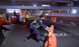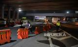 REPUBLIKA.CO.ID, BEKASI -- Petugas melakukan penutupan sementara Jalan Layang Sheikh Mohamed Bin Zayed (MBZ) di Bekasi, Jawa Barat, Kamis (6/5) dinihari, saat pemberlakuan larangan mudik lebaran 2021. Penutupan Jalan Layang MBZ akan dilakukan pada 6 Mei 2021 pukul 00.00 WIB hingga 18 Mei 2021 pukul 23.59 WIB.
