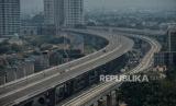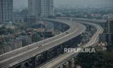 Suasana lengang jalan layang tol Mohamed Bin Zayed setelah dilakukan penutupan pada (6/5) dini hari di kawasan Bekasi, Jawa Barat, Kamis (6/5). Penutupan tersebut dilakukan hingga 18 Mei 2021 mendatang guna membatasi pergerakan arus lalu lintas keluar dan masuk Jabotabek selama pemberlakuan larangan mudik Lebaran sebagai upaya menekan penyebaran Covid-19. (FOTO : Republika/Thoudy Badai)