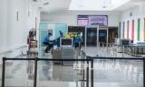 Petugas berada di area keberangkatan Bandara Internasional Sultan Mahmud Badaruddin (SMB) II Palembang, Sumatera Selatan, Kamis (6/6/2021). Hari pertama penerapan larangan mudik Idul Fitri 1442 H untuk mengantisipasi resiko penyebaran COVID-19 pada tangggal 6 hingga 17 Mei 2021, Bandara Internasional Sultan Mahmud Badaruddin (SMB) II Palembang sepi. (FOTO : Antara/Nova Wahyudi)