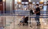 Sejumlah calon penumpang menunggu keberangkatan di Terminal 3 Bandara Soekarno Hatta, Tangerang, Banten, Kamis (6/5). Larangan mudik atau perjalanan antardaerah/provinsi selama periode libur Lebaran mulai hari ini Kamis (6/5) hingga Senin (17/5). Selama masa larang mudik tersebut perjalanan hanya boleh bagi mereka yang masuk kategori pengecualian, yakni Orang yang melakukan perjalanan dinas,Kunjungan keluarga sakit, Kunjungan duka anggota keluarga meninggal, Kepentingan persalinan yang didampingi maksimal dua orang dan Kepentingan nonmudik tertentu lainnya.Prayogi/Republika. (FOTO : Republika)