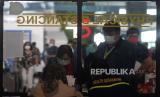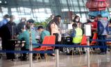 Sejumlah calon penumpang mengantre ketika dilakukan pemeriksaan dokumen dan syarat sebelum pemberangkatan di Terminal 3 Bandara Soekarno Hatta, Tangerang, Banten, Kamis (6/5). Larangan mudik atau perjalanan antardaerah/provinsi selama periode libur Lebaran mulai hari ini Kamis (6/5) hingga Senin (17/5). Selama masa larang mudik tersebut perjalanan hanya boleh bagi mereka yang masuk kategori pengecualian, yakni Orang yang melakukan perjalanan dinas,Kunjungan keluarga sakit, Kunjungan duka anggota keluarga meninggal, Kepentingan persalinan yang didampingi maksimal dua orang dan Kepentingan nonmudik tertentu lainnya. (FOTO : Republika)