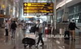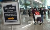 Sejumlah calon penumpang berjalan menuju area pemeriksaan dokumen dan syarat sebelum pemberangkatan di Terminal 3 Bandara Soekarno Hatta, Tangerang, Banten, Kamis (6/5). Larangan mudik atau perjalanan antardaerah/provinsi selama periode libur Lebaran mulai hari ini Kamis (6/5) hingga Senin (17/5). Selama masa larang mudik tersebut perjalanan hanya boleh bagi mereka yang masuk kategori pengecualian, yakni Orang yang melakukan perjalanan dinas,Kunjungan keluarga sakit, Kunjungan duka anggota keluarga meninggal, Kepentingan persalinan yang didampingi maksimal dua orang dan Kepentingan nonmudik tertentu lainnya.Prayogi/Republika. (FOTO : Republika)
