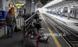 Sejumlah penumpang menunggu kedatangan kereta api lokal Bandung Raya di Stasiun Bandung, Kota Bandung, Kamis (6/5). PT KAI Daop 2 Bandung memberhentikan layanan perjalanan Kereta Api jarak jauh untuk mudik pada penerapan larangan mudik lebaran sejak Kamis (6/5) hingga Senin (17/5) serta melakukan pembatasan operasional kereta lokal dengan mengurangi jadwal perjalanan menjadi 39 perjalanan dan membatasi jam operasional. Foto: Republika/Abdan Syakura (FOTO : REPUBLIKA/ABDAN SYAKURA)