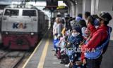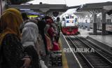 REPUBLIKA.CO.ID, BANDUNG -- Sejumlah penumpang menunggu kedatangan kereta api lokal Bandung Raya di Stasiun Bandung, Kota Bandung, Kamis (6/5).