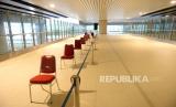 Suasana bandara sepi tanpa pengunjung saat sore di Bandara Internasional Yogyakarta, Kamis (6/5). Bandara Internasional Yogyakarta kini hanya beroperasi selama empat jam mulai 06.00 WIB hingga 11.00 WIB. Ini mengikuti dan mendukung kebijakan pemerintah terkait larangan mudik lebaran 2021. Sehingga kegiatan bandara hanya pada pagi hingga siang hari. (FOTO : Wihdan Hidayat / Republika)