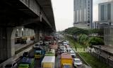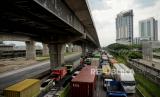 Kemacetan panjang sebagai imbas penyekatan dan penutupan jalan tol layang MBZ..