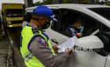 REPUBLIKA.CO.ID, TANGERANG -- Petugas Kepolisian menghentikan pengendara yang melintas di check point penyekatan arus mudik Tol Cikupa, Tanggerang, Kamis (6/5). Petugas gabungan memberlakukan penyekatan pemudik jelang perayaan Hari Raya Idul Fitri 1442 H guna mengantisipasi risiko peningkatan kasus penularan COVID-19.