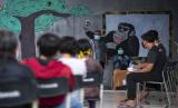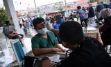 REPUBLIKA.CO.ID, JAKARTA -- Warga antre untuk vaksinasi COVID-19 di RPTRA Bahari, Gandari Selatan, Jakarta Selatan, Kamis (6/5). Pemprov DKI Jakarta mulai melakukan vaksinasi bagi warga usia 18 tahun ke atas yang berada di RW rentan dan padat penduduk.