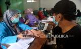 REPUBLIKA.CO.ID, JAKARTA -- Petugas dari Puskesmas Kecamatan Pulogadung melakukan screening kesehatan warga sebelum divaksin COVID-19 di Balai Warga Rw 01 Pulogadung, Jakarta, Jumat (7/5).