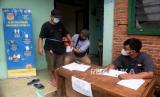 Petugas dari Puskesmas Kecamatan Pulogadung melakukan screening kesehatan warga sebelum divaksin COVID-19 di Balai Warga Rw 01 Pulogadung, Jakarta, Jumat (7/5). Kegiatan vaksin yanng menyasar warga usia 18-59 yang berada di RW pemukiman padat/kumuh tersebut setiap harinya menargetkan sebanyak 100 warga divaksin yang berlangsung sejak 5 hingga 12 Mei mendatang.Prayogi/Republika (FOTO : Prayogi/Republika.)