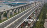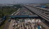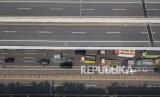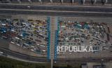 REPUBLIKA.CO.ID,BEKASI -- Foto udara kendaraan terjebak kemacetan di KM 29 saat akan melintasi check point penyekatan di Tol Cikarang Barat KM 31, Kabupaten Bekasi, Jawa Barat, Jumat (7/5/2021).