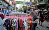 REPUBLIKA.CO.ID, JAKARTA -- Pengunjung memilih pakaian di Pasar Baru, Jakarta, Jumat (7/4). Selama bulan Ramadhan hingga menjelang Idul Fitri 1442 Hijriyah, sejumlah pedagang mengaku mengalami kenaikan pendapatan hingga 30 persen.