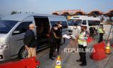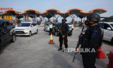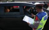 Petugas Kepolisian memeriksa kelengkapan dokumen perjalanan saat penyekatan mudik lebaran 2021 di Gerbang Tol Palimanan, Jawa Barat, Sabtu (8/5). Pada hari ketiga diberlakukannya larangan mudik lebaran, kendaraan penumpang yang tidak dilengkapi dokumen perjalanan lengkap diputarbalikkan oleh petugas di Gerbang Tol Palimanan. Foto : Edwin Putranto/Republika (FOTO : Republika/Edwin Dwi Putranto)