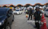 Petugas Kepolisian berjaga saat penyekatan mudik lebaran 2021 di Gerbang Tol Palimanan, Jawa Barat, Sabtu (8/5). Pada hari ketiga diberlakukannya larangan mudik lebaran, kendaraan penumpang yang tidak dilengkapi dokumen perjalanan lengkap diputarbalikkan oleh petugas di Gerbang Tol Palimanan. (FOTO : Republika/Edwin Dwi Putranto)