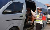 Petugas Kepolisian menurunkan penumpang yang tidak membawa kelengkapan dokumen perjalanan saat penyekatan mudik lebaran 2021 di Gerbang Tol Palimanan, Jawa Barat, Sabtu (8/5). Pada hari ketiga diberlakukannya larangan mudik lebaran, kendaraan penumpang yang tidak dilengkapi dokumen perjalanan lengkap diputarbalikkan oleh petugas di Gerbang Tol Palimanan. (FOTO : Republika/Edwin Dwi Putranto)